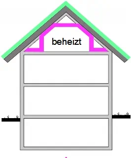 - Ein bereits ausgebautes und beheizbares Dachgeschoss kann durch eine nachträgliche Verbesserung der Wärmedämmung wärmetechnisch aufgewertet werden.