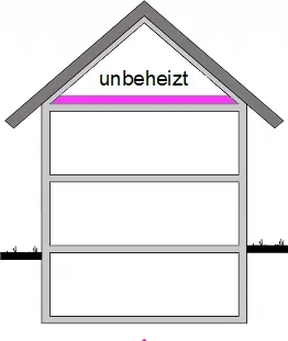 - Wird der Dachraum nicht ausgebaut, gehört die Dämmschicht auf bzw. unter die oberste Geschossdecke.