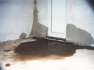 - fehlende oder defekte horizontale und vertikale Sperrschichten, die eine Aufnahme von Feuchtigkeit aus dem Erdreich unmöglich machen. Normalerweise wird der kapillare Aufwärtstransport von Feuchtigkeit aus dem Erdreich durch wasserundurchlässige Schichten verhindert. Sie werden horizontal an einer tiefen Stelle des Außenmauerwerks eingebracht (z.B. Kunststoff- oder Bitumenbahnen). Vertikale Sperrschichten werden von außen auf sie senkrechten Wände eines Kellers aufgebrachte (z.B. Bitumenbeschichtungen).