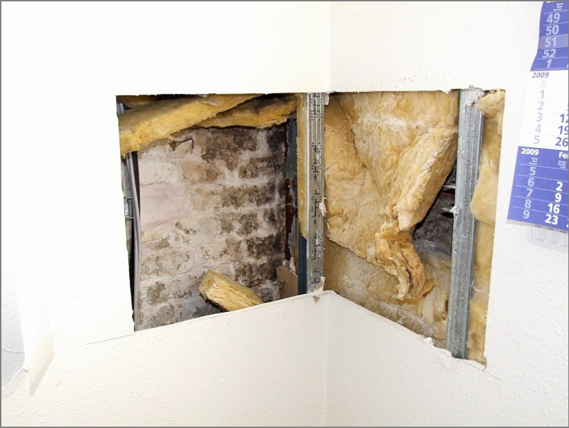 - Bei Innendämmungen können Feuchteschäden und Schimmelbefall beobachtet werden, wenn die Dämmung nicht luftdicht eingebaut ist und Raumluft in einen Hohlraum zwischen Dämmstoff und zu dämmender Wand einströmt.