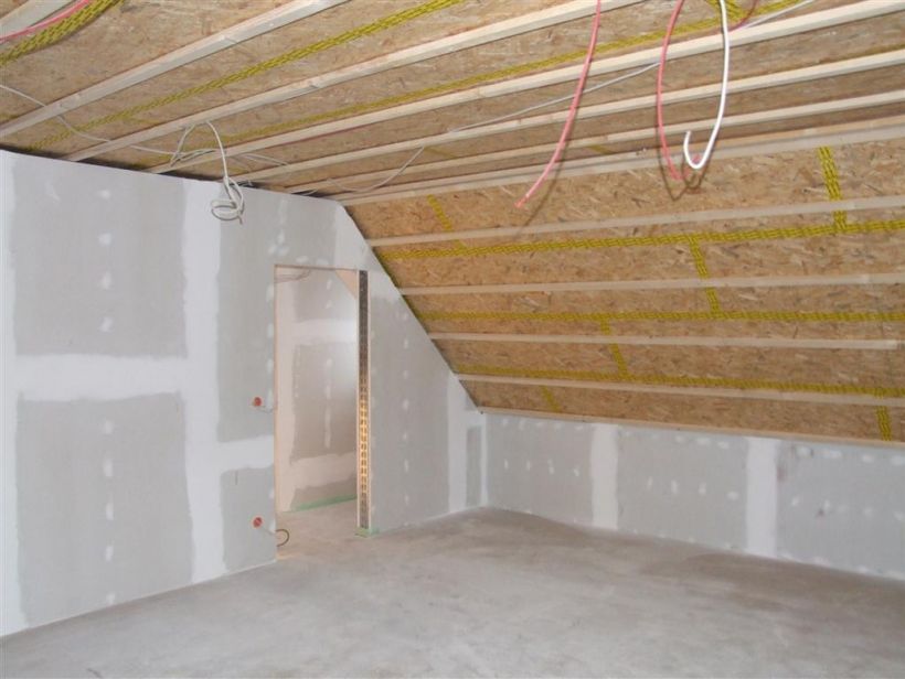 Bleibt das gesamte Dachgeschoss unausgebaut, und damit auch unbeheizt, gehört die Wärmedämmung immer auf den Dachboden. Sichtbar bleiben, wenn man von innen schaut, die Unterspannbahn bzw. Unterdeckung, oder wo es keine gibt, die Dachziegel. Den Dachboden zu dämmen, also die Wärmedämmung auf bzw. in die obersten Geschossdecke einzubauen, ist immer dann richtig, wenn der Dachraum unbenutzt oder lediglich als Trockenboden oder Speicher für allerlei Krempel genutzt wird. In diesem Fall bleibt es also über der Wärmedämmung im Winter kalt. Der Dachraum kann und sollte mit Außenluft belüftet werden können. Da Frostgefahr über der Dämmschicht besteht, ist ggf. auf Heizungsrohre und Ausdehnungsfäße (Schwerkraftheizung) zu achten. Der Einbau von Wärmedämmung in die Dachschrägen wäre in diesem Fall zwar technisch möglich, aber wenig sinnvoll, da Wärmedämmung nur bei Temperaturunterschieden wirksam wird. Die Dachbodendämmung ist in der Regel mit dem erforderlichen Hintergrundwissen unkompliziert und auch für den Laien möglich.