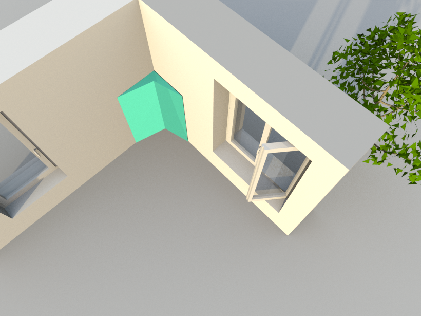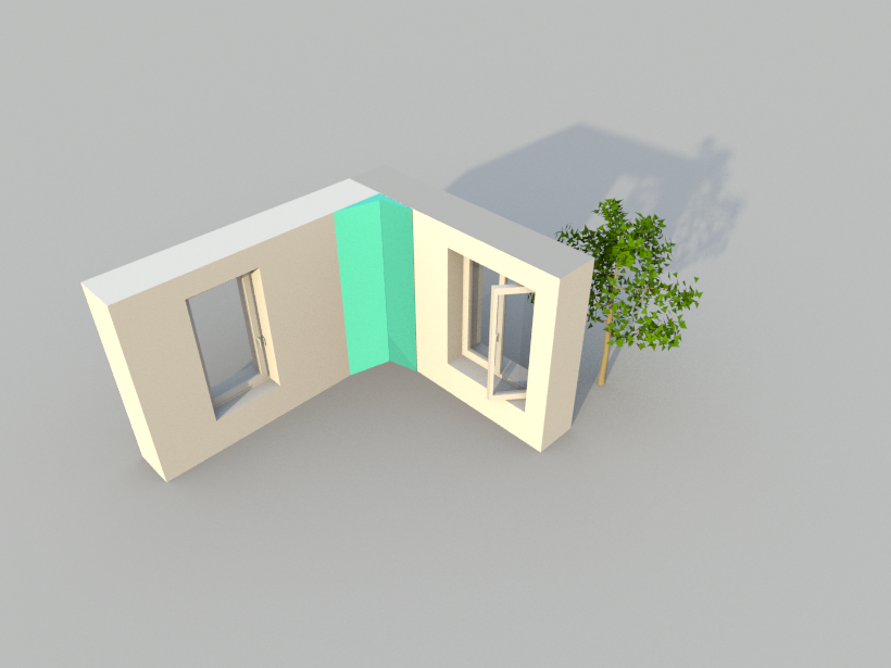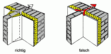 - in den vertikalen Raumecken, die durch eine in einer Außenwand eingebundene Innenwand beidseitig entstehen;