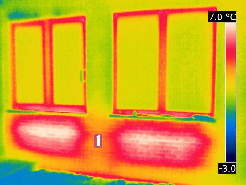 Mit Wärmebildern von außen lassen sich die entstehenden Wärmeverluste der wärmeren Außenwandabschnitte gut sichtbar machen. Mit dem Anbringen örtlicher Innendämmungen und der Entfernung von Verkleidungen bietet sich die Chance, den erheblichen Wärmeverlust solcher Bereiche, deutlich zu verringern. Das gilt sowohl für gemauerte Nischen als auch für schwach gedämmte glatte Außenwände.