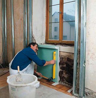 - Es ist zweckmäßig, wenn die gesamte Heizkörpernische mit Dämmstoff ausgefüllt wird. Dies erfolgt bis zur Vorderkante der Wand, abzüglich der Stärke der Verkleidung oder des Verputzes. Der (eventuell modernisierte) Heizkörper wird mittels neuer Konsolen davor montiert.