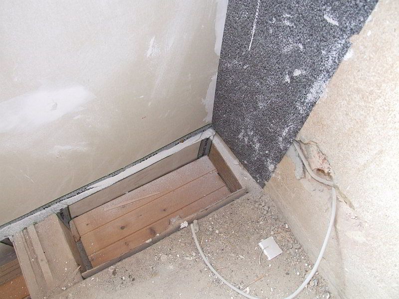Der Bereich zwischen der Ober- und Unterseite (Fußboden und Decke) der Holzbalkendecke sollte zwischen den Balken ebenfalls gedämmt werden. Dazu muss nun auch noch die Unterseite der Decke geöffnet werden. Das dort befindliche Material (Schlacke, Sand o.ä.) muss entfernt werden, um Platz für die Innendämmung zu schaffen.