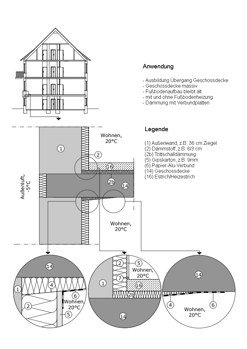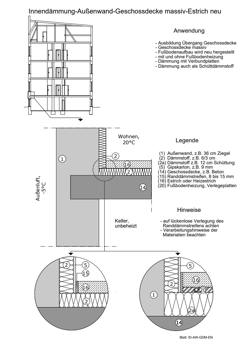 Innendämmung Konstruktionsdetails massive Decken #Innendämmung Außenwand, Geschossdecke Massiv, Estrich neu Innendämmung Außenwand, Geschossdecke, Estrich oder Heizestrich neu #Innendämmung Außenwand, Geschossdecke massiv, Bestand ungenügend gedämmte Wand Innendämmung Außenwand, Geschossdecke massiv, Estrich verbleibt