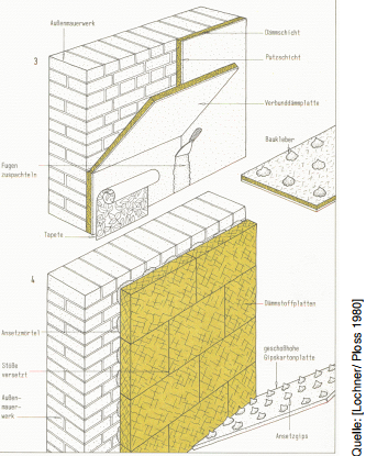 Bei dieser Gelegenheit sind auch die Heizkörpernischen durch Dämmung zu verschließen. Dazu gibt es einen eigenen Ratgeber (Dämmung der Heizköpernische). Beachten Sie auch die Hinweise zu Konstruktionsdetails verschiedener Bauteile.