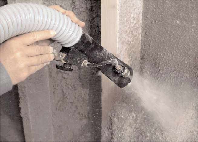 Zelluloseflocken aus Altpapier werden befeuchtet und an die vorbereitete Wand (Holzabstandslattung) gesprüht. Nach dem Aufsprühen wird die Oberfläche abgezogen und eine feuchtevariable Dampfbremse luftdicht verlegt. Anschließend erfolgt die raumseitige Beplankung mit oder ohne Installationsebene durch eine Gipskarton- oder Spanplatte. Eine weitere Möglichkeit besteht darin, eine verlorene Schalung zu montieren. In den entstehenden Hohlraum werden Zelluloseflocken oder Holzfasern eingeblasen.