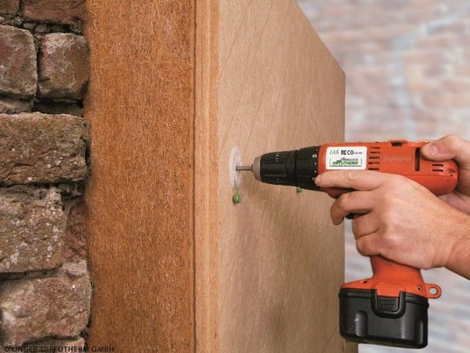 Das System UdiIN Reco besteht aus zwei miteinander verbundenen Holzfaserdämmplatten unterschiedlicher Dichte. Mit der Dämmplatte lassen sich Unebenheiten von +/- 20 mm ausgleichen, da sich die flexible Seite hohlraumfrei an den Untergrund anschmiegt. Die Montage erfolgt einfach und trocken - ohne Kleber oder Mörtelbett: Die harte Platte wird mittels Nut und Feder mit der benachbarten Platte verbunden und ist gleichzeitig auch Putzträger. Die Platten werden dann mit patentierten, verstellbaren Stelldübeln an der Wand befestigt. Der entfallende Arbeitsaufwand für eine Untergrundbearbeitung reduziert die Kosten bei der Sanierung.