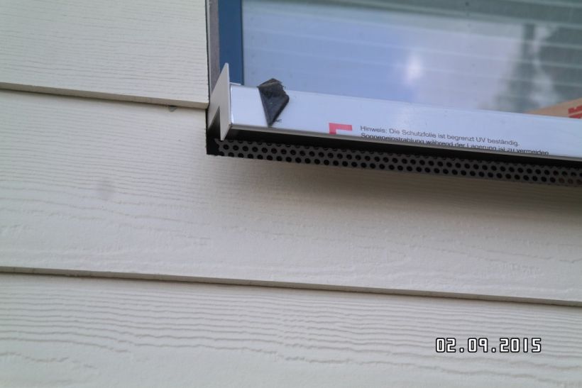 Be- und Entlüftungsöffnungen Ein- und Ausströmöffnungen werden über der gesamten montierten Länge (hinterlüftete Fassade) und überall dort benötigt, wo die Hinterlüftung durch Bauelemente unterbrochen wird.