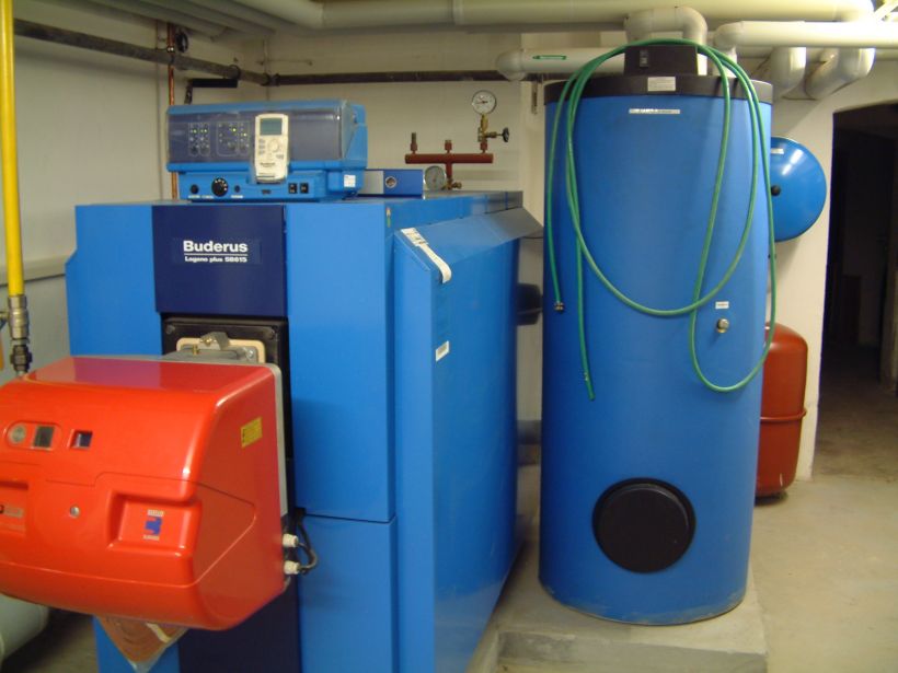 - im Einbau von Heizgerät und Warmwasserspeicher bzw. Durchlauferhitzer in den beheizten Bereich des Hauses, z.B. im Bad
