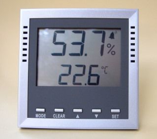 Als praktische Leitgröße für einen erforderlichen Luftwechsel kann auch der Feuchtegehalt der Luft dienen. Denn die Luftfeuchtigkeit im Raum ist ebenfalls abhängig von der Nutzung (Wasserdampf durch Duschen, Waschen, Kochen, Atmung, Trocknung, Pflanzen, Aquarien, u.v.a.m.) und sie ist recht einfach mit dem Hygrometer zu ermitteln. Hygrische Schalter, also Schalter, die bei einer einstellbaren Luftfeuchtigkeit von etwa 55 - 60% einen Abluftventilator einschalten, können den Lüftungsvorgang automatisieren und funktionieren auch bei Abwesenheit. Allerdings ist zu beachten, dass der Lüftungsvorgang nur dann anzustoßen ist, wenn die Luftfeuchtigkeit draußen eine effektive Feuchteabfuhr ermöglicht. Dazu ist sowohl die Luftfeuchtigkeit als auch die Temperatur mittels Messfühler auch draußen zu messen (siehe auch relative und absolute Luftfeuchtigkeit). Die Elektronik entscheidet dann, ob es sinnvoll ist, den Ventilator in Betrieb zu nehmen oder nicht.